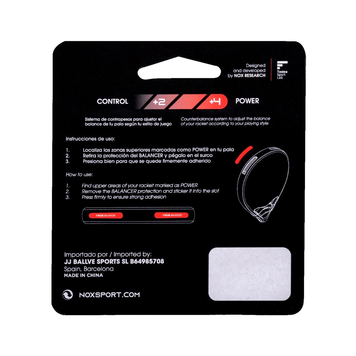Vektene er enkle å montere og festes raskt og enkelt, selv om racketen allerede er utstyrt med rammebeskyttelse. Systemet er designet for NOX-racketer som er kompatible med Weight Balance System-teknologien, for eksempel AT10 Genius-seriens modeller.