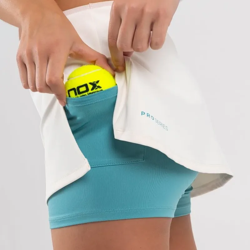 Skjørtet har integrerte shorts som gir full dekning og trygghet i alle bevegelser. Shortsen har også en praktisk sidelomme for padelballer, slik at du alltid har en ball for hånden under spillet.
