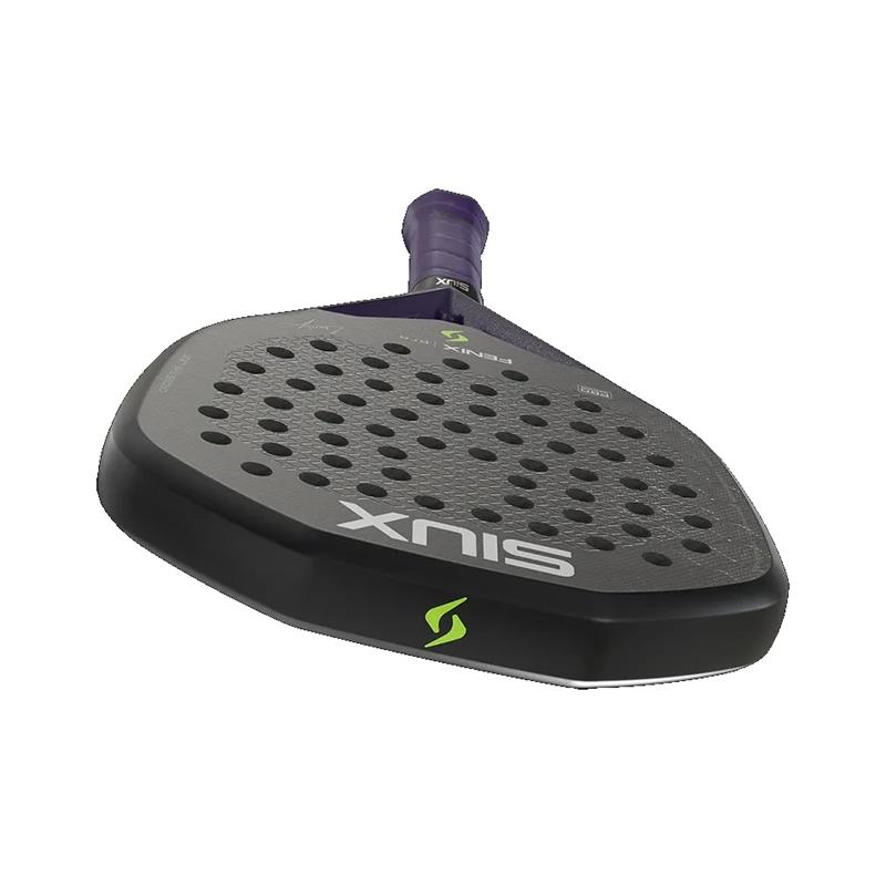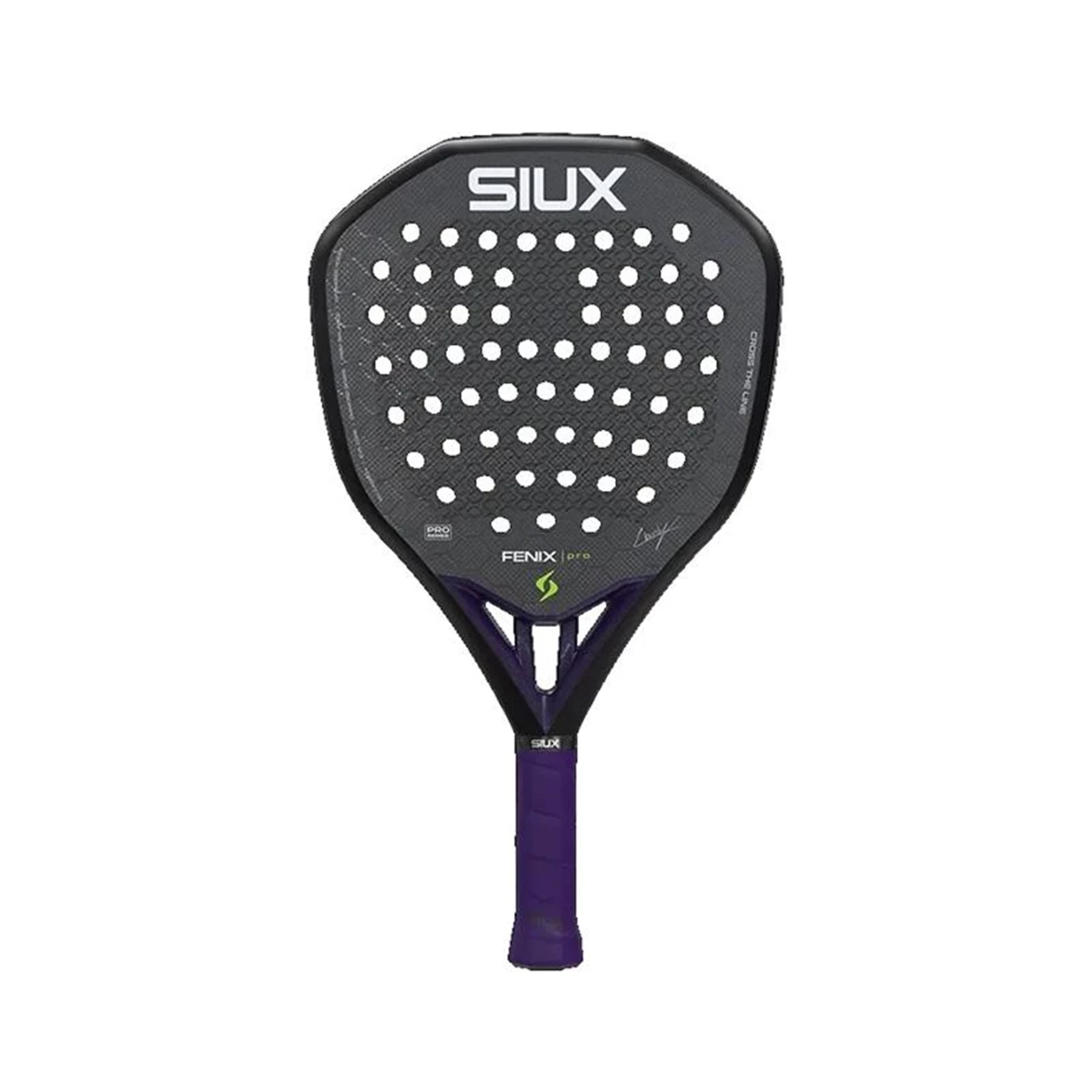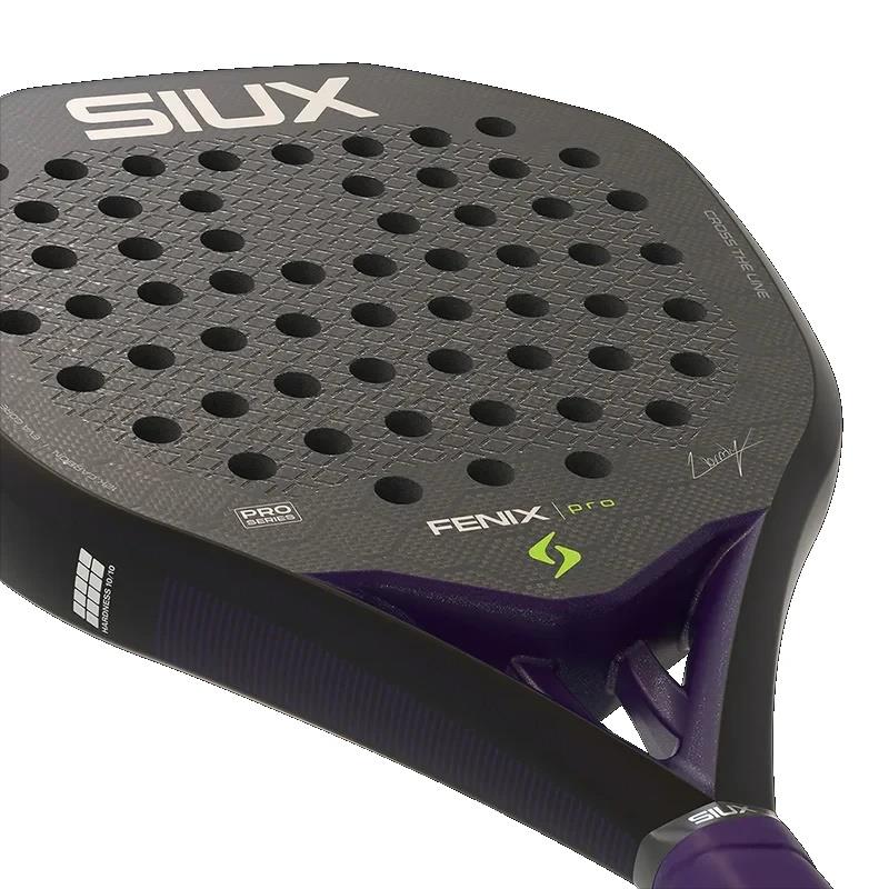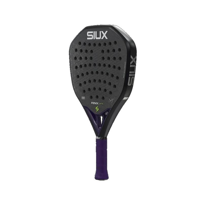 Oppdag Siux Fenix Pro 5 Black - den nye padelracketen som er utviklet i samarbeid med stjernespilleren Leo Augsburger. Modellen er designet for offensive spillere som bygger spillet sitt på smash og press ved nettet. Den diamantformede designen med høy balanse maksimerer kraften og gjør det enklere å ta kontroll over spillet i luften. Slagflatene er laget av 24K karbonfiber, noe som gir en stivere og mer responsiv følelse som gjør det enkelt å generere kraft. EVA Hard-gummikjernen bidrar til et fast og direkte balltreff, mens 3K-karbonfiberrammen øker stabiliteten i hvert øyeblikk. Den blanke overflaten med 3D-tekstur forbedrer også spinn og kontroll i tekniske slag. Padelracketen er også utstyrt med Siux Dual Pro Grip-systemet og en utskiftbar håndleddsstropp for høy komfort og praktisk bruk.