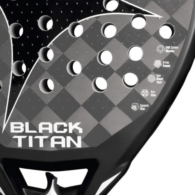Med en ny hybridform og avanserte materialer gir Black Titan en ekstremt presis og direkte respons - perfekt for krevende spillere som ønsker maksimal kraft uten å miste kontrollen, takket være den innovative 24K Carbon Master-strukturen. Det nye H-Eva Power-skummet gir en fast og eksplosiv følelse som lar deg dominere hvert eneste slag.