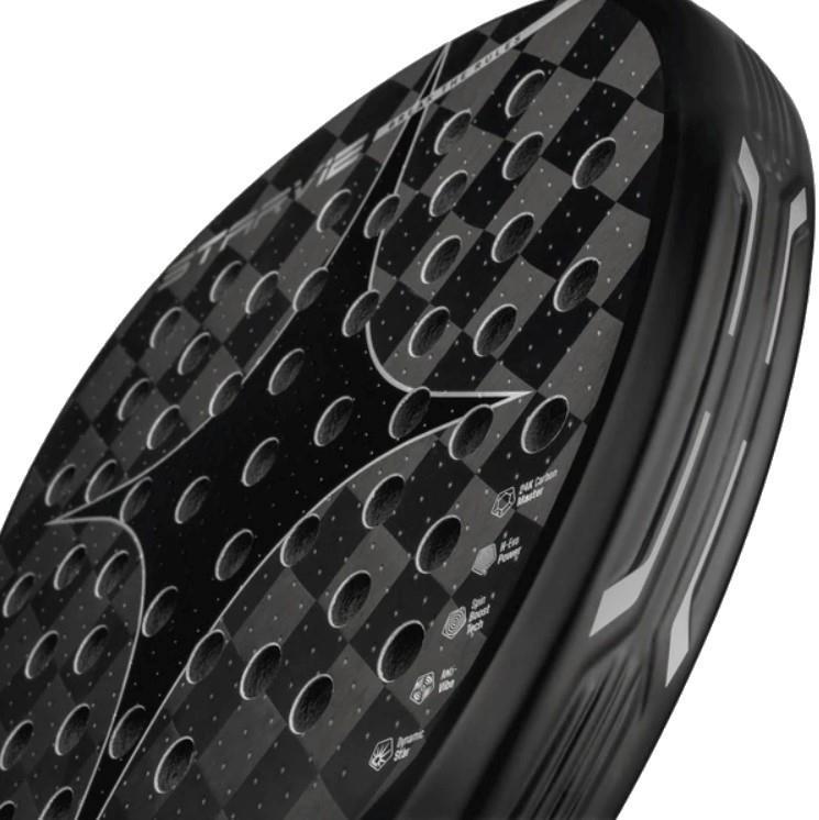 Padelracketen har også to banebrytende innovasjoner: den nye Anti-Vibe-teknologien, som minimerer vibrasjoner ved balltreff for å redusere belastningen på leddene og øke komforten på banen, og Dynamic Star-systemet - en utskiftbar sentral stjerne med to vektalternativer som gjør at du kan justere racketens balanse. Med dette systemet kan balansen varieres med opptil 0,3 cm for en tilpasset spillopplevelse.